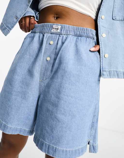 Wrangler denim shorts with elastic waist in light blue part of a set Very well made.