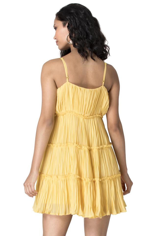 Buy FABALLEY Yellow Solid Square Neck Georgette Womens Flared Very well made.