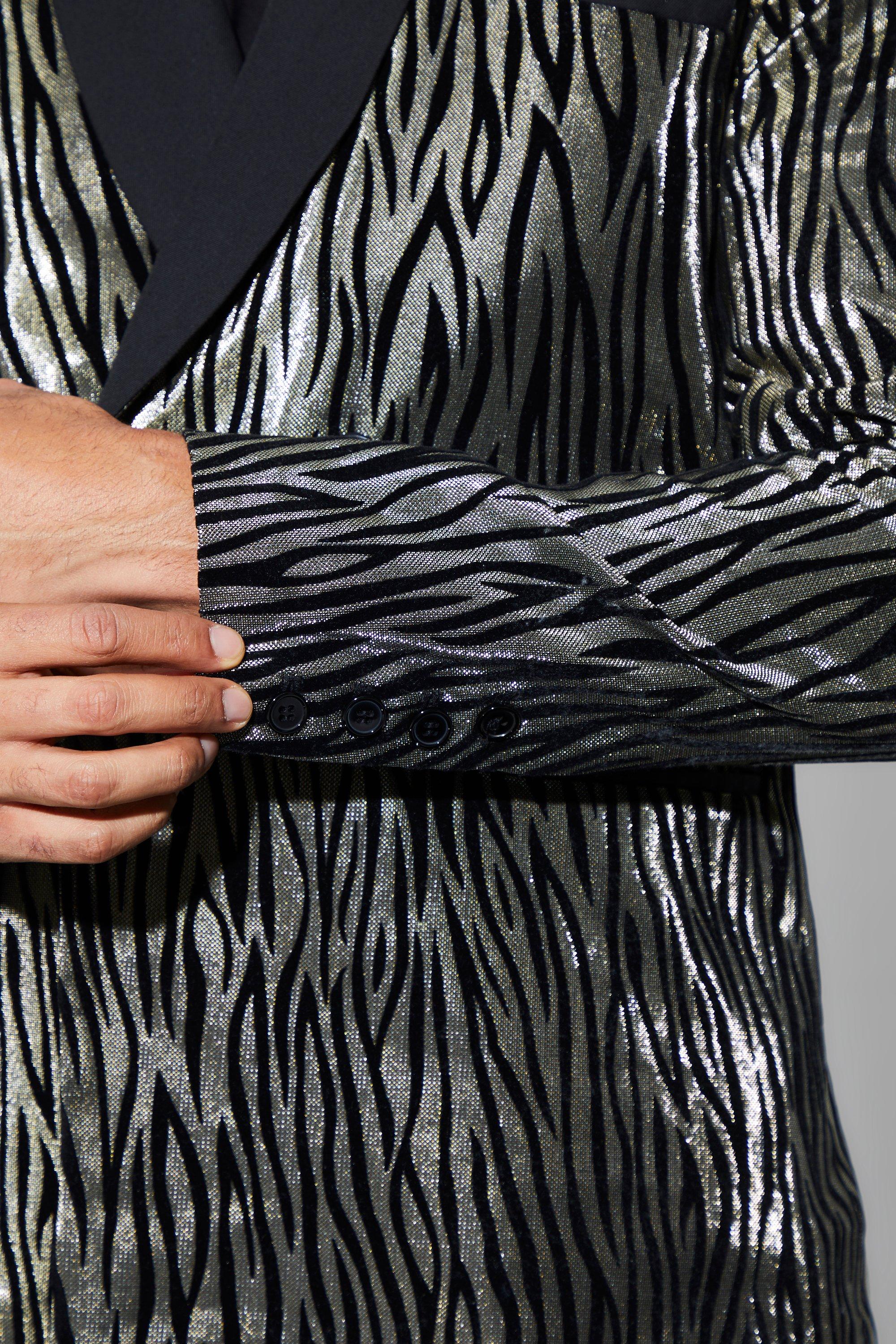 Men Zebra Stripe Lurex Jacket Suit Blazer Fancy Dress Showman Costume Stage Slim Very well made.
