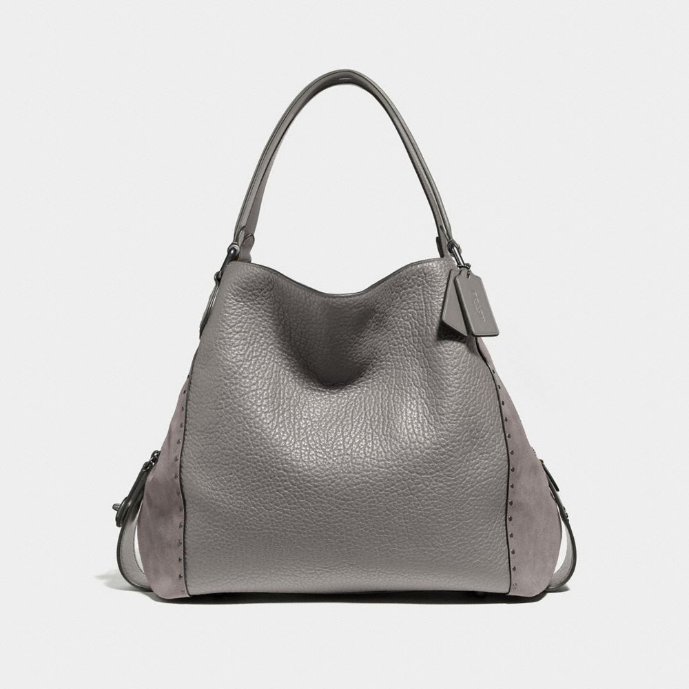 COACH 32988 EDIE SHOULDER BAG 42 WITH RIVETS HEATHER GREY Very well made.