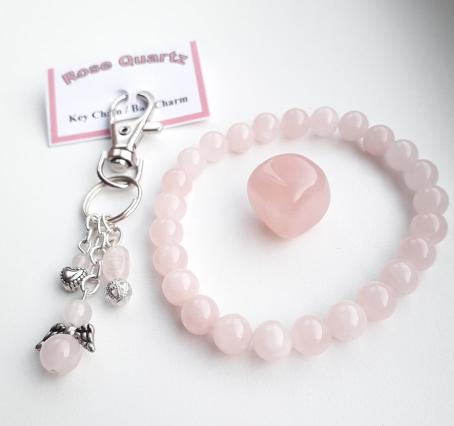 Rose Quartz Gift Set Bracelet Bag charm Tumbles Folksy Very well made.