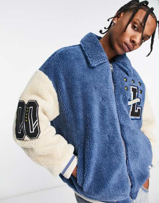 Bershka embroidered sherpa varsity jacket in blue ASOS Very well made.