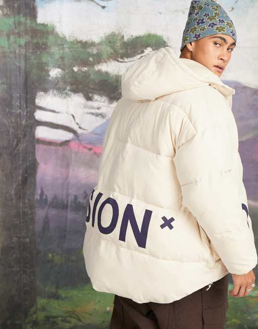 COLLUSION Unisex 2 in 1 puffer coat with attached gilet in stone Very well made.