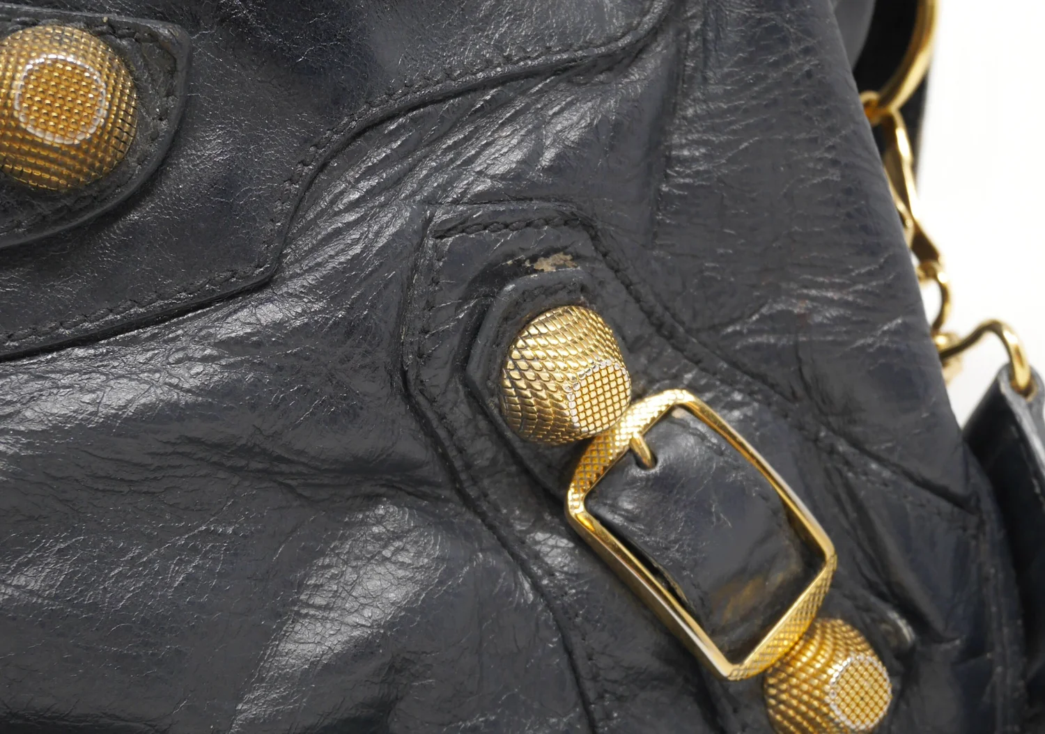Balenciaga Anthracite Leather Giant 21 Gold Motorcycle City Bag Very well made.