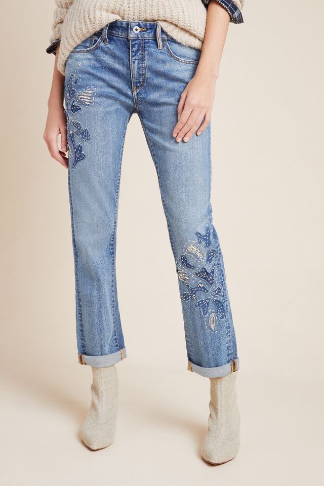 Boyfriend Jeans with Floral Embroidery Very well made.