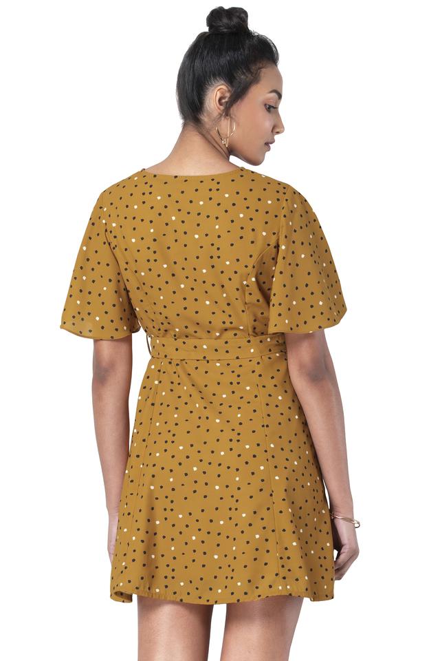 Buy FABALLEY Yellow Polka Dots Georgette V Neck Womens Dress Very well made.