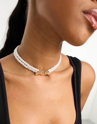ASOS DESIGN faux pearl short necklace with cherub and heart design Very well made.