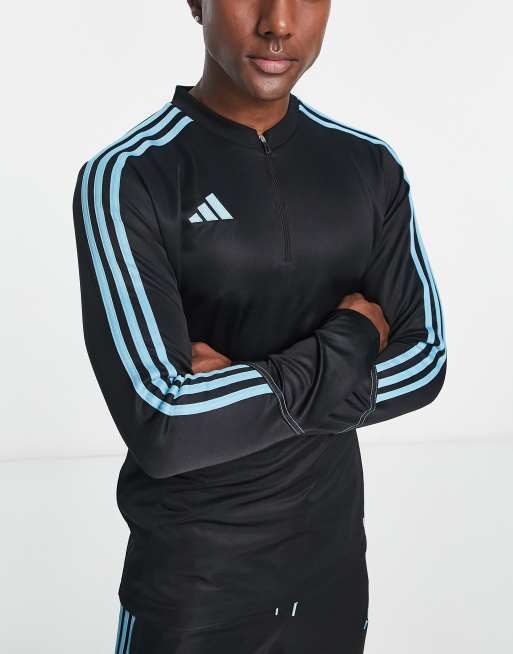 adidas Football Tiro 23 1 4 zip sweatshirt in black and blue ASOS Very well made.