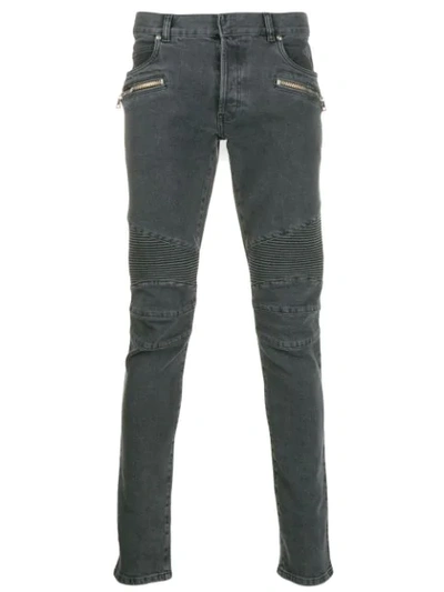 Balmain Biker Slim Leg Distressed Jeans in Grey for Men Lyst UK Very well made.