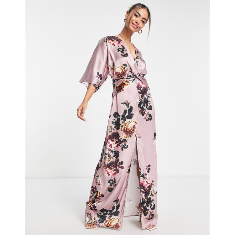 Hope Ivy kimono sleeve satin maxi dress in mauve Very well made.