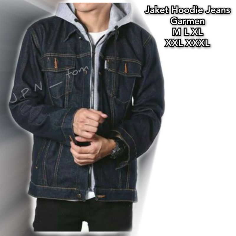 jaket jeans hoodie pria jumbo polos zipper biru dongker XXL XXXL jaket denim ariel variasi blueblack Very well made.