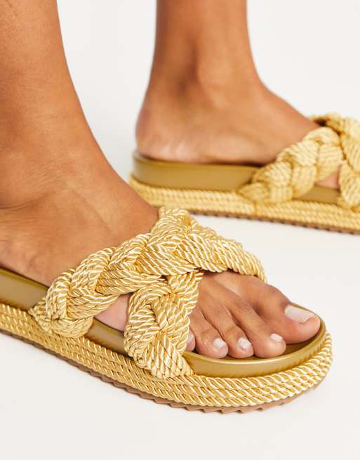 ASOS DESIGN Jasmine plaited espadrille footbed sandals in gold Very well made.