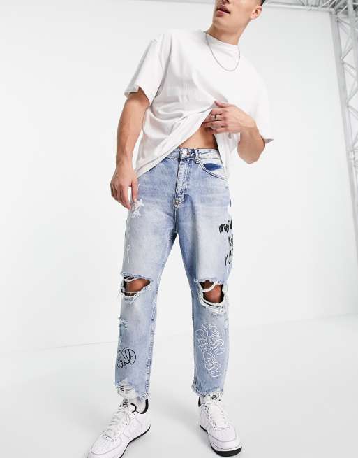 Bershka Jeans larghi blu medio con strappi Very well made.