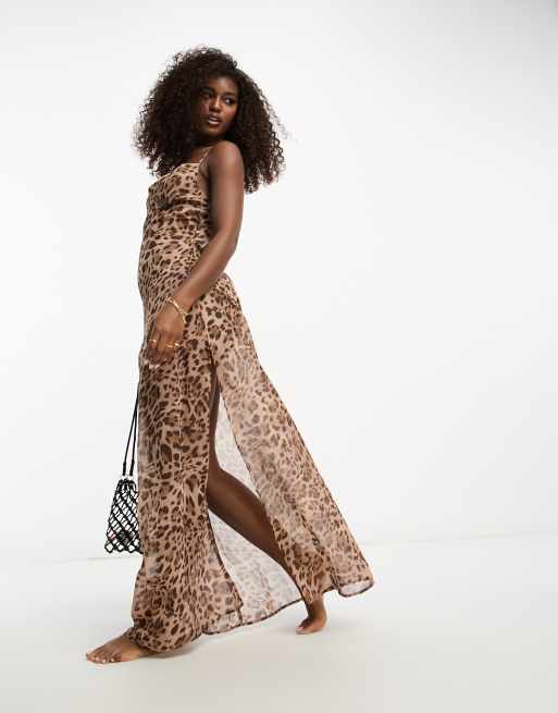 Miss Selfridge beach cross back cowl neck maxi dress in leopard Very well made.