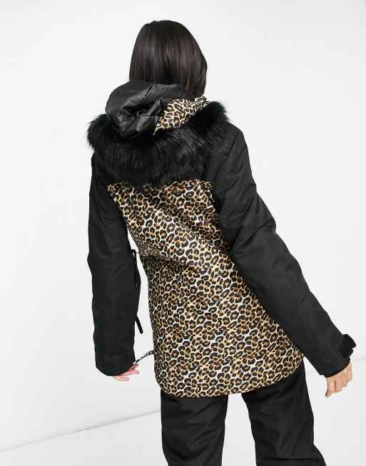 Surfanic Powder overhead technical snowboard jacket in leopard Very well made.