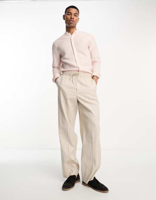 ASOS DESIGN regular smart linen shirt with mandarin collar in pale Very well made.