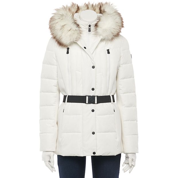 Women s F.O.G. by London Fog Faux Fur Hood Belted Puffer Jacket Very well made.