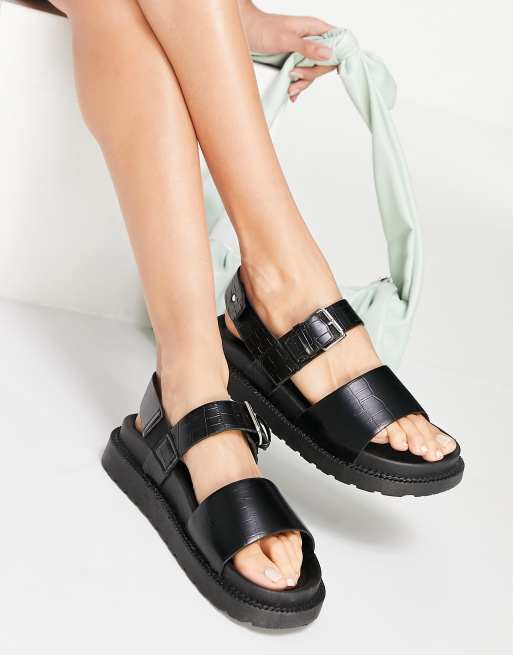 schuh Taytum two part buckle flat sandals in black croc Very well made.
