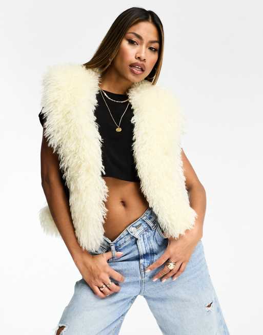 Jayely faux leather shaggy trim gilet in black and cream ASOS Very well made.