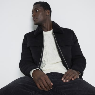 River Island Shearling Jacket in Blue for Men Lyst Canada Very well made.
