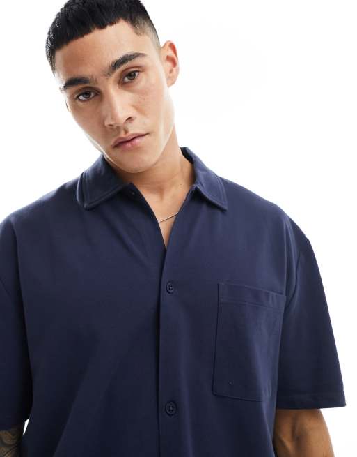 ASOS DESIGN short sleeved pique jersey shirt in navy Very well made.