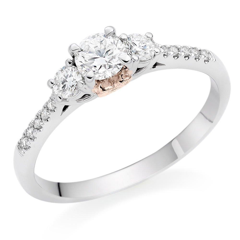 Rose Hearts 18ct White Gold and Rose Gold Diamond Three Stone Ring Very well made.