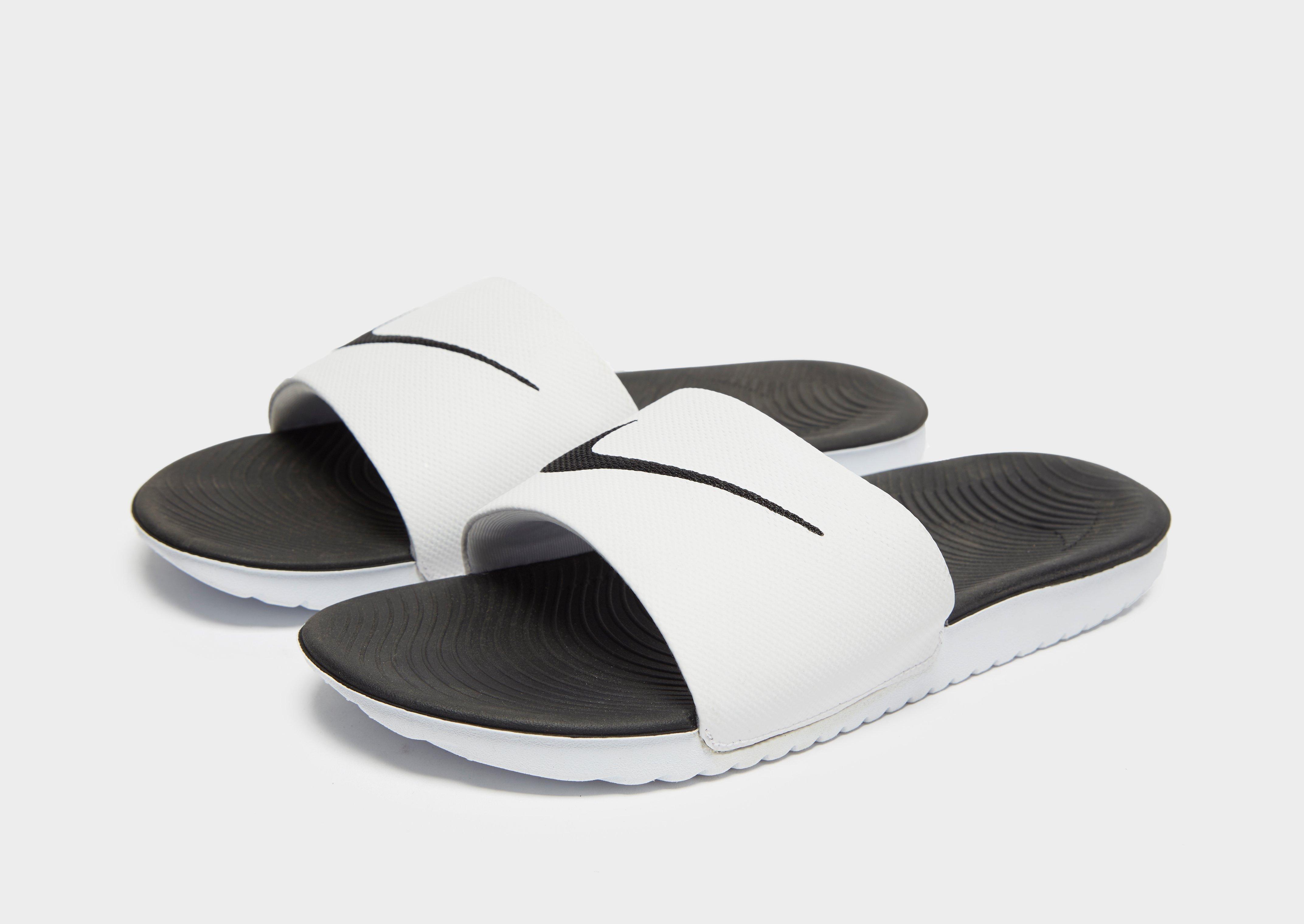White Nike Kawa Slides Junior JD Sports UK Very well made.