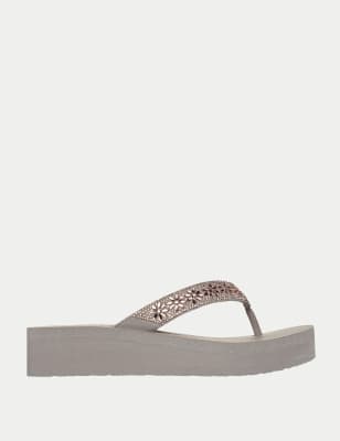 Cali Vinyasa Wild Daisies Wedge Flip Flops Skechers M S Very well made.