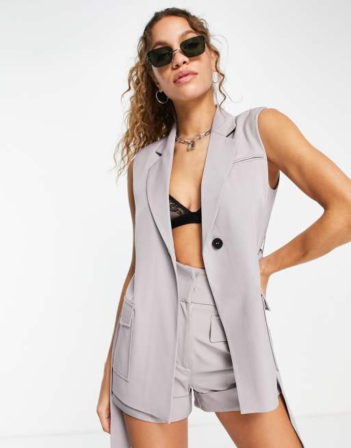 4th Reckless tailored tie front sleeveless blazer co ord in lavender Very well made.