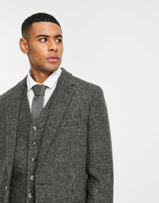 Noak Harris Tweed slim suit jacket in charcoal grey Very well made.