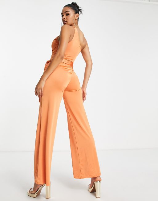ASOS DESIGN one shoulder ruched bodice wide leg jumpsuit in orange Very well made.