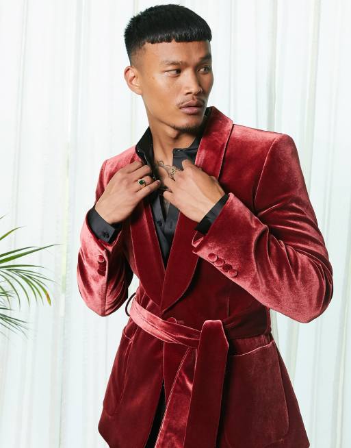 ASOS DESIGN skinny velvet smoking jacket in burgundy Very well made.
