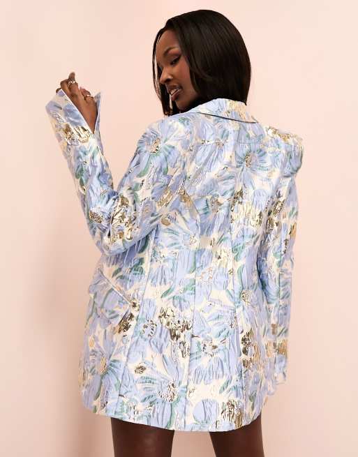 ASOS LUXE jacquard blazer with shoulder pads in blue floral print Very well made.