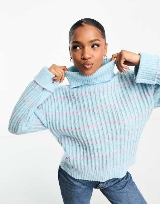 Pieces turtleneck sweater in baby blue with lilac stripe ASOS Very well made.
