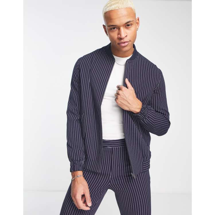 Topshop striped wool bomber jacket in gray Very well made.