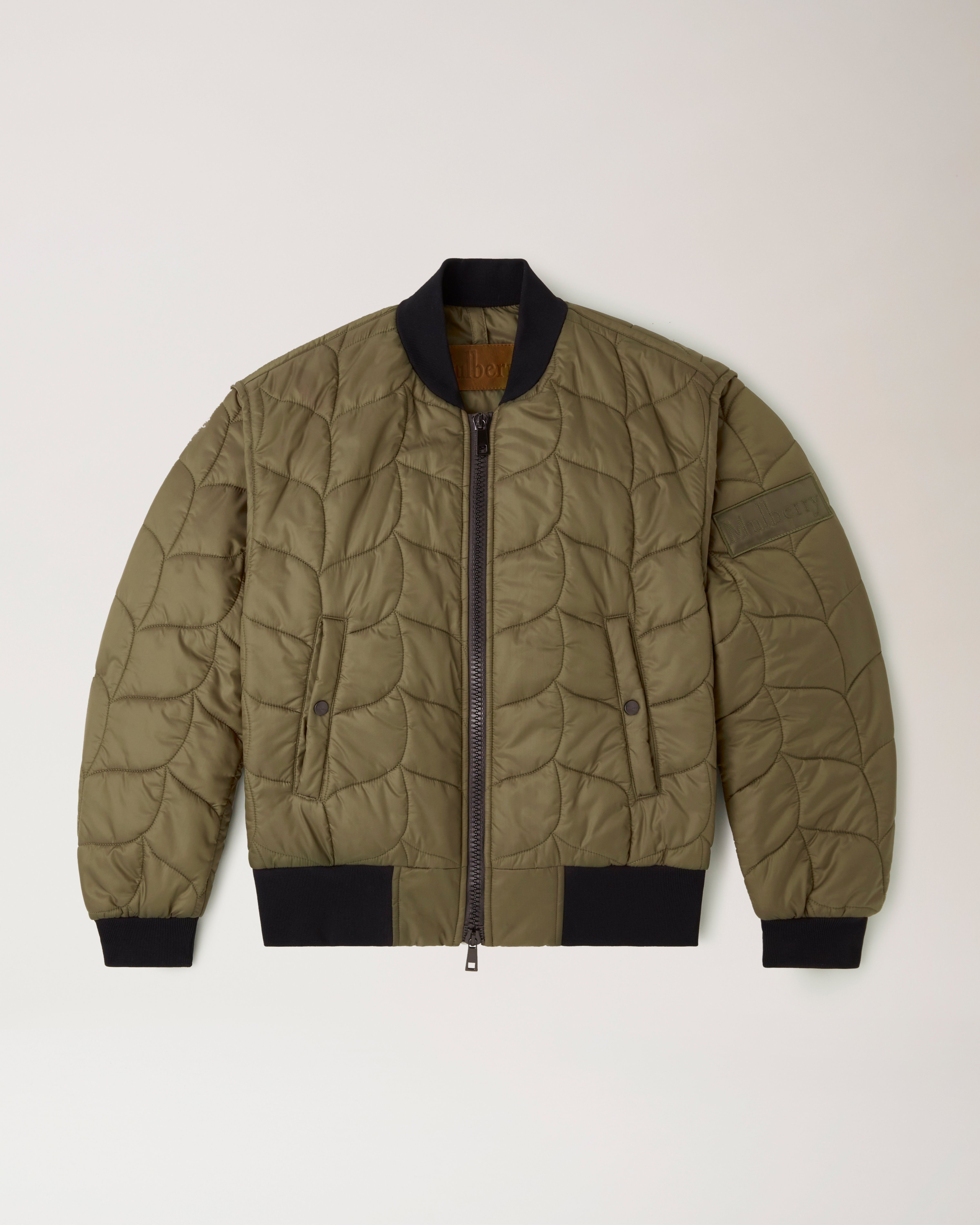 Italian Quilted Down Snap Bomber in Olive Very well made.