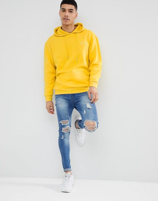 boohooMAN Fleece Hoodie With Man Embroidery In Yellow ASOS Very well made.