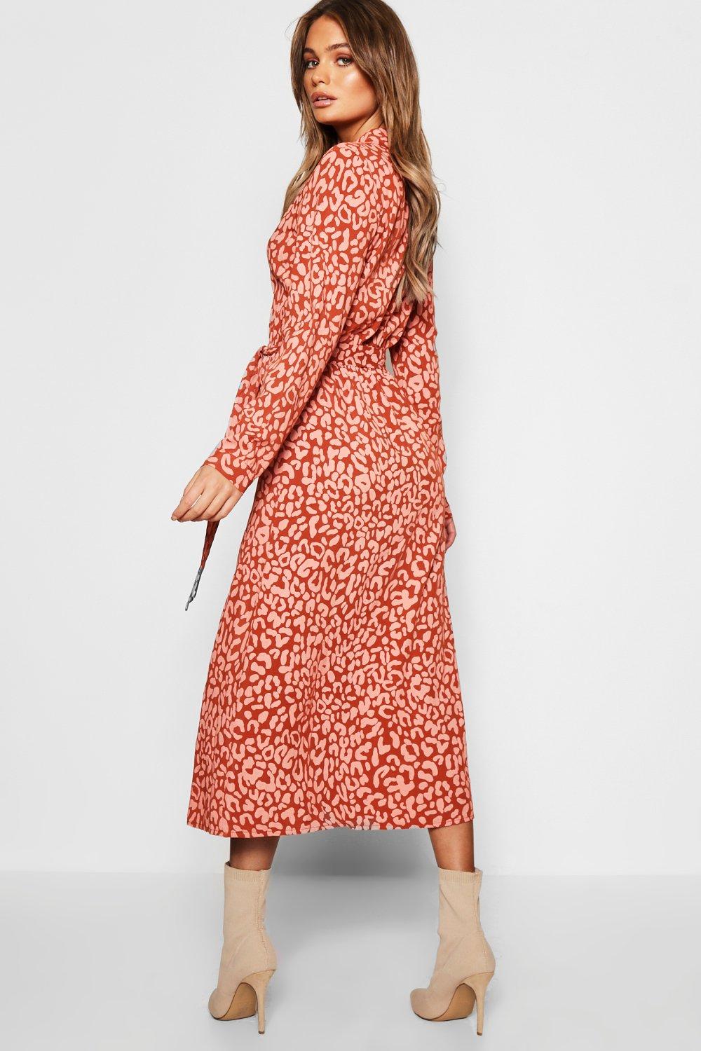 Leopard Collar Button Through Belted Midi Dress Very well made.
