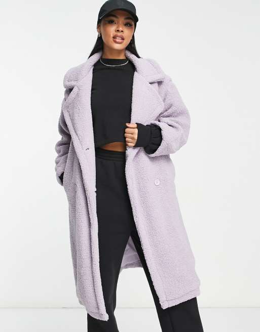 QED London oversized longline borg coat in lilac Very well made.