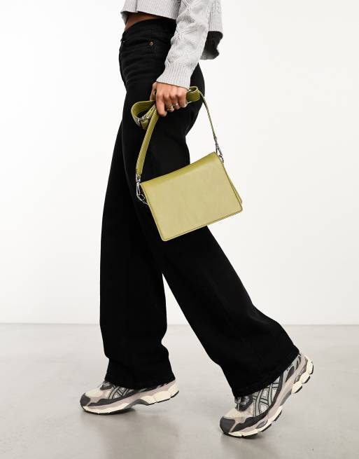 ASOS DESIGN Borsa a tracolla verde chiaro in pelle con scomparti Very well made.