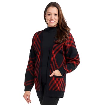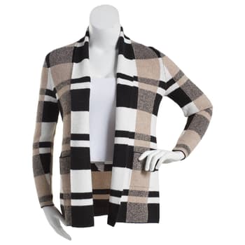 Petites 89th Madison 3 Tone Plaid Cozy Mossy Cardigan Very well made.