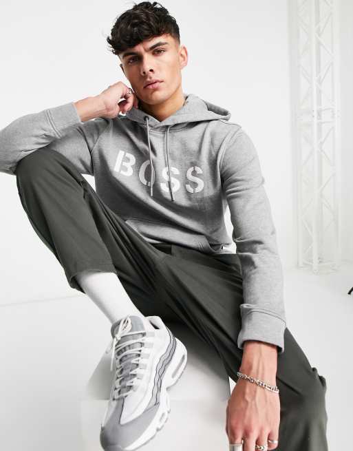 BOSS Wetry large logo overhead hoodie in gray ASOS Very well made.