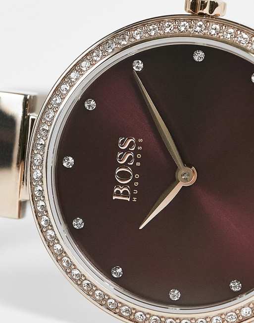 BOSS classic watch with crystal detail and real leather strap in Very well made.
