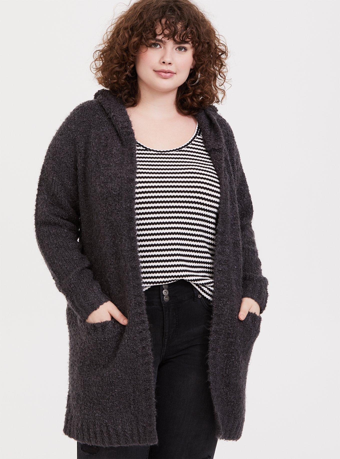Plus Size Charcoal Grey Boucle Hooded Cardigan Coat Torrid Very well made.
