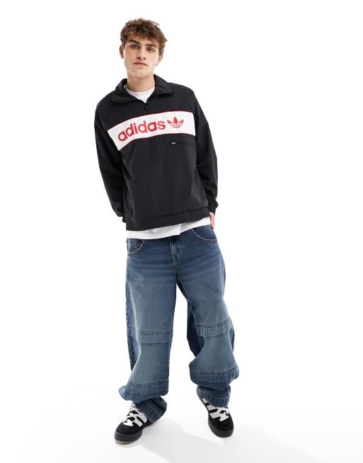 adidas Originals linear logo half zip sweatshirt in black white Very well made.
