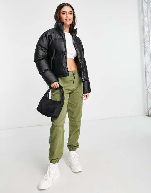Brave Soul tropic faux leather puffer jacket in black ASOS Very well made.