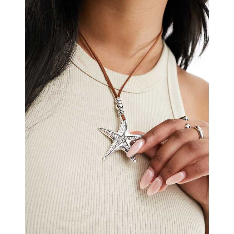 DesignB London brown cord necklace with starfish pendant in silver Very well made.