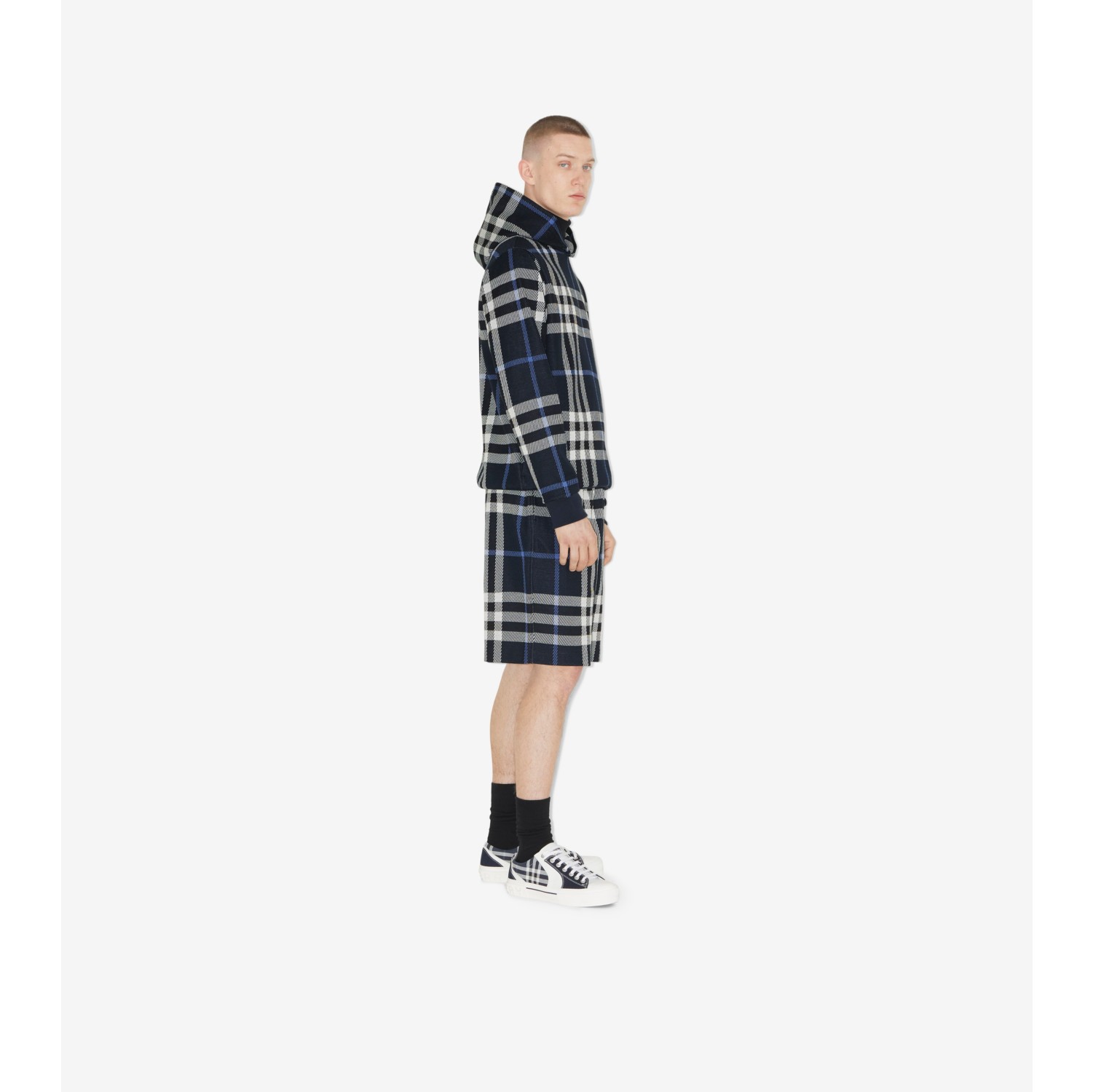 Check Cotton Hoodie in White dark blue Men Burberry Official Very well made.