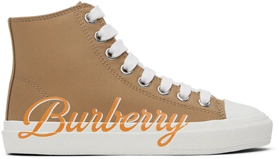Burberry Logo Script Gabardine High top Sneakers In Beige ModeSens Very well made.