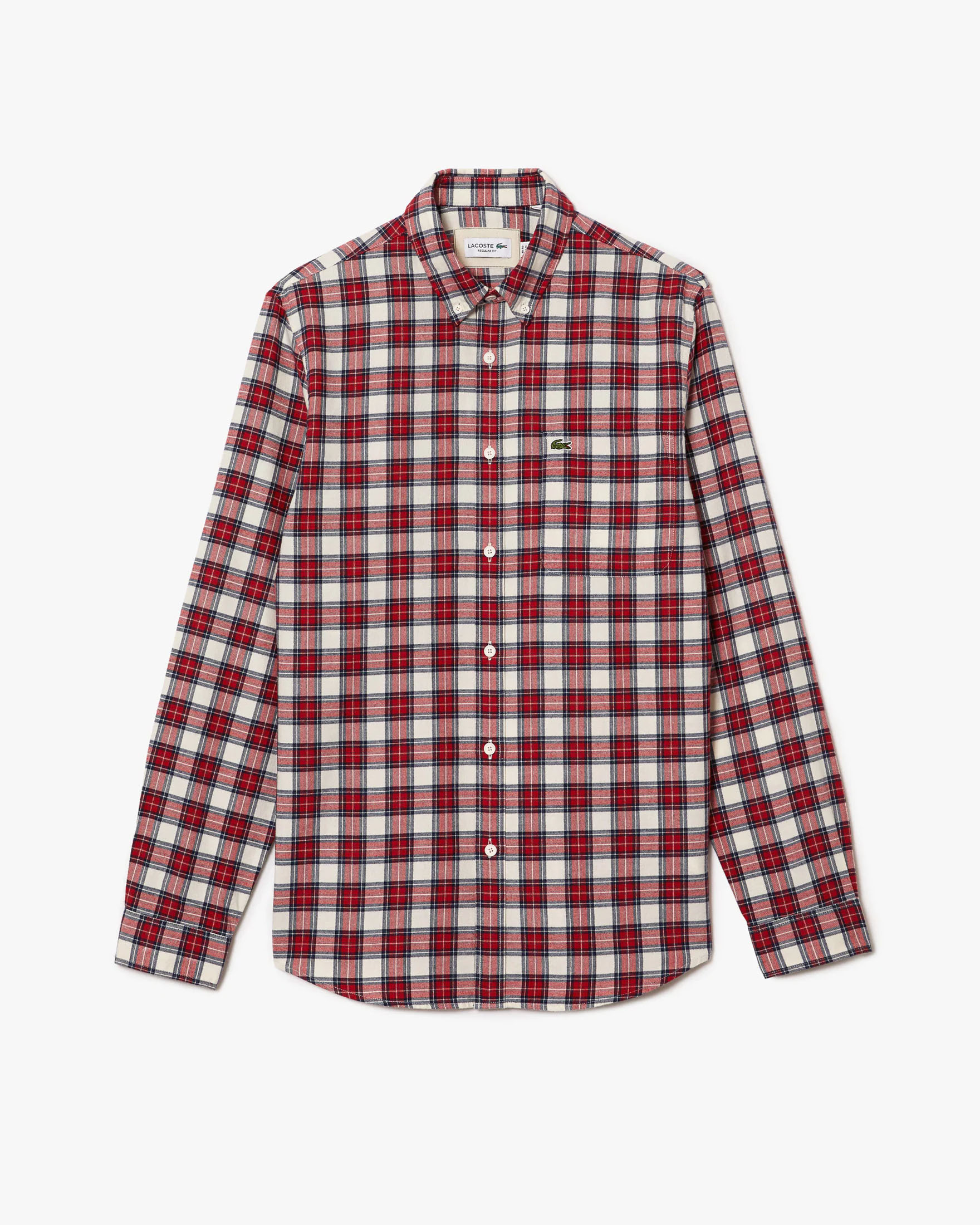 Camicia check bianca e rossa in flanella di cotone con collo Very well made.